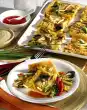 Roll up the pancakes and place them in a greased, ovenproof casserole dish. Mix crème fraîche, tomato paste and paprika and season to taste. Spread the cream over the pancakes. Sprinkle with the remaining filling and bake in a preheated oven (electric: 175°C/ gas: level 2) for 15 minutes.