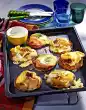 Peel, wash and finely grate the carrot. Wash the thyme, dab dry and chop finely. Heat oil in a pan and fry minced meat until crumbly. Add carrot and thyme and fry briefly. Remove from heat. Grate Gouda finely. Finely puree 75 g cooked ham, cut the remaining ham into fine cubes.