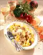 Wash the potatoes and cook for about 20 minutes. Quench, peel and press through a potato press while still hot. Season. Add 3 egg yolks and knead everything with the hand mixer