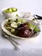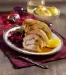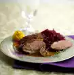 Onions peel, halve. Peel, wash and chop the carrot. Fry with the duck on the fat pan in a hot oven (electric cooker: 175° C/circulating air: 150 °C/gas: level 2) for 2 1/2-2 3/4 hours. Pour on the stock little by little. Soak the duck more often
