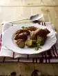 Preheat oven (electric cooker: 175 °C/circulating air: 150 °C/gas: level 2). Peel onions, dice 2 roughly. Peel, wash and cut carrots into pieces. Wash, quarter, core and dice the apple. Mix onion cubes, carrot, apple, cinnamon stick and cloves. Distribute in the fat pan (deep baking tray). Pour 150 ml water and apple juice