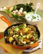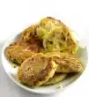 Mix mayonnaise, yoghurt and sour cream. Divide the mixture into thirds. Season 1/3 with mustard, vinegar, salt and pepper. Sprinkle with fried onions