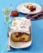 Meanwhile, bring 80 ml of water, milk, 75 g of butter, sugar and 1 pinch of salt to the boil for the choux pastry. Add 100 g flour. Stir with a spoon or a scraper until the dough comes off the bottom of the pot as a lump. Pour into a bowl. Whisk the eggs and stir them in bit by bit until the dough sticks to a finger. Pour the dough into a piping bag with perforated spout