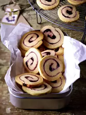 Preheat oven (electric cooker: 200 °C/circulating air: 175 °C/gas: see manufacturer). Line two baking trays with baking paper. Cut the roll of dough into slices just under 0.5 cm thick. Place them on the baking tray with a little space between them.