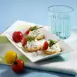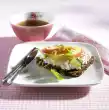 Fold in yoghurt. Season to taste with salt and pepper. Spread the tuna salad on the crispy slices and garnish with a caper apple.