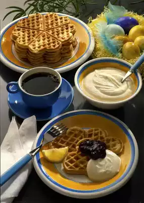 Cover the dough and let it rest for 1 hour. Beat egg whites until stiff and fold into the dough. Fry in the greased waffle maker bit by bit. Also fill with lemon curd