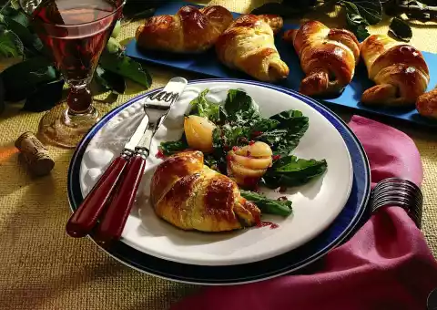 Place on a baking tray lined with baking paper. Mix egg yolk and cream and spread on the croissants. Bake in a preheated oven (electric: 200 °C/ gas: level 3) for 12-15 minutes.