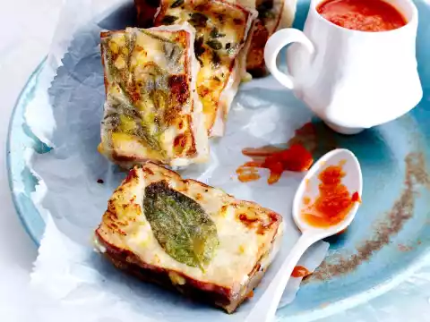 Heat the oil in a pan in portions. Fry the tofu packs for 2-3 minutes one after the other on each side, take them out and let them drip off on kitchen paper. Serve with gazpacho dip.