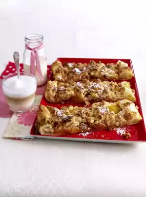 Bake in the preheated oven (electric cooker: 200 °C/circulating air: 175 °C/gas: level 3) for approx. 30 minutes. Let it cool down on the baking tray. Dust with icing sugar and cut into strips.