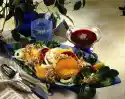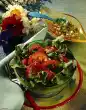 Cleaning and washing vegetables. Cut cucumber into slices, halve tomatoes. Peel garlic and onion. Chop garlic and onion into rings