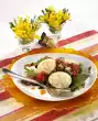 Peel the shallots and cut into rings. Wash, quarter and seed the tomatoes. Cut the flesh into small cubes. Chop walnut halves finely. Clean and wash lamb's lettuce.