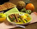 Cream fat and sugar. Stir in salt, rum, eggs, lemon peel and milk. Stir in flour, baking powder and 200 g muesli. Heat the waffle iron and coat with oil. Fill 3 tablespoons of batter into the hot waffle iron and bake in it until golden brown.