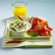 Yoghurt & Fruit: Stir yoghurt and 2 tablespoons honey until smooth. Wash and halve the grapes, possibly remove seeds. Peel and quarter mandarins, peel banana. Cut both into slices. Wash apple, remove seeds, cut into slices