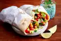 Clean, wash and dry grate the cucumber, cut it in half and slice or slice it lengthwise into thin strips. Pluck the grapes from the stems, wash, dab dry and halve. Dice cheese