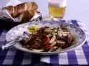 Wash and clean the salad. Pluck romaine lettuce into pieces. Peel 3 blood oranges so that the white skin is completely removed. Remove the fillets with a sharp knife between the parting skins.
