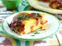 Keep cold for about 4 hours. In the meantime roast the almond flakes in a dry pan until golden brown. Turn out the puddings onto dessert plates. Sprinkle generously with flaked almonds. Dust with icing sugar and decorate with mint. Serve with raspberry sauce