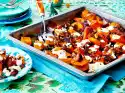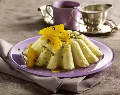 Wash 1 orange with hot water and remove the zest with a zest ripper. Peel oranges so that the white skin is completely removed. Remove the fillets with a sharp knife between the parting skins. Squeeze the remaining juice out of the parting skins and collect it. Mix the juice with honey and marinate the orange fillets in it. Turn semolina pudding onto a plate. Decorate with some orange fillets, zests and pistachios. Add the rest of the orange fillets