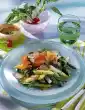 Wash the dill, dab dry and chop. Add to the sauce. Season to taste with salt, pepper and sugar. Mix cucumber and lentils with the mustard sauce. Arrange each with two slices of salmon on a plate