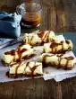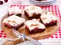 Mix flour, baking powder, 10 g starch and cocoa powder together and carefully fold into the dough, stir in melted butter drop by drop. Put the dough into a greased square springform pan (26 x 26 cm) sprinkled with flour and smooth it down.