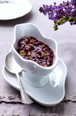 Stir in cranberries, season with salt, pepper and cayenne pepper. Bring to the boil and simmer for 12-15 minutes. Arrange in a small bowl.