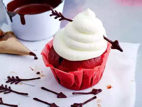 For the topping, whisk 75 g soft butter and icing sugar with the whisks of the mixer for approx. 4 minutes until light creamy. Stir in cream cheese by the spoonful. Pour into a piping bag with a medium perforated spout.
