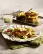 Heat oil in a pan and bake 2-3 pancakes on each side for about 3 minutes one after the other until golden brown. Tear with two forks about 1 minute before the end of the baking time and keep warm. In the meantime roast almonds in a pan without fat until golden brown.