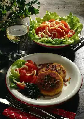 With wet hands, form about 8 lentils from the dough and turn in the breadcrumbs. Cut bacon into fine strips. Heat oil in a pan and fry the bacon in it until crispy. Remove the bacon and fry the lentils in it until golden brown.