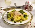 Add stock, apple juice and cream and bring to the boil. Thicken slightly with sauce thickener and bring to the boil again briefly. Season to taste with pepper, cinnamon and possibly some salt (be careful, the roast is salted and therefore already well seasoned). Cut the meat open and arrange on a plate with the vegetables. Add sauce extra