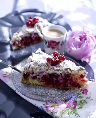 Bake in the preheated oven (electric range: 200 °C/ convection oven: 175 °C/ gas: level 3) on the middle shelf for about 15 minutes. In the meantime, beat the egg whites until stiff, pour in 100 g sugar and continue beating until the sugar has dissolved. Fold in the grated coconut. Take the cake out of the oven, carefully spread the coconut mixture loosely on top and bake at the same temperature on the lower rack for 35-40 minutes. Remove from the oven, immediately remove from the edge of the springform pan and allow to cool in the pan. Remove from the mould, dust with icing sugar and decorate with currants.