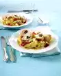 Wash the currants, remove the berries from the panicles, except for some for decoration. Cream fat with salt and 450 g sugar. Stir in eggs one after the other. Mix flour and baking powder, stir in alternately with the milk