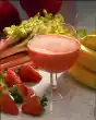 Peel the banana, cut it into slices and immediately sprinkle it with the lemon juice so that it does not discolour. Sort the raspberries. Place the fruits in a wide glass jug and pour the currant juice over them.