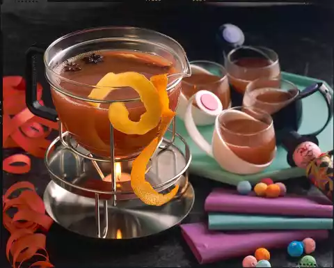 Place the currant and orange juice, sugar, cinnamon sticks, star anise, cloves and lemon juice in a pot and bring to the boil briefly. Hang the mulled wine spice bag inside and let it simmer for about 10 minutes.
