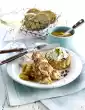 Cut the chicken filets into slices. Season the curry beans with salt and pepper, arrange them on 4 plates and arrange the chicken fillet slices on top. Add roast potatoes