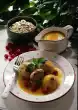 Wash the meat and put it in a pot. Clean, wash and chop the soup vegetables and add them to the meat. Pour a good 1 1/2 litres of water on it. Add 1 teaspoon of salt. Bring everything to the boil and simmer for about 45 minutes. Skim the foam several times