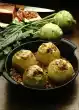 Wash and peel the asparagus and cut off the woody ends. Cut the asparagus into pieces. Remove the meat and let it cool down a little. Pour stock through a sieve and bring to the boil. Cook the asparagus for about 10 minutes. Let the rice swell for about 20 minutes in about 1/2 litre of boiling salted water.