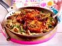 Heat the oil in a large pot. Brown the onion, soup vegetables and potatoes in it. Sprinkle with 2 tbsp. curry and sauté briefly. Add approx. 1 1⁄2 l water, so that everything is covered. Wash and add the meat and season with salt, pepper, bay leaf and allspice.