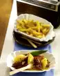 Dust with curry and garnish with cucumber and parsley.