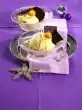 Press in 20 balls 2 almond halves each as feet and arms. Put them on the baking tray and carefully press one ball each as a head on it. Whisk the egg yolks and milk, spread on men and caps. Bake them for 15-20 minutes. Let them cool down.