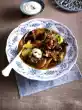 For the Ajvar cream, wash mint, dab dry and chop finely. Mix the ajvar, crème fraîche and mint. Season with salt, pepper and lemon juice