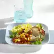 Divide the chops, vegetables and mashed potatoes between 4 plates. Serve sprinkled with chives and garnished.