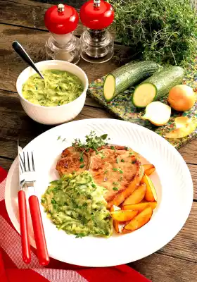 Wash the chops and pat them dry. Heat the oil in two coated pans and fry the chops for 4-5 minutes on each side. Season with salt and pepper. Wrap the chops in aluminium foil and keep warm for a short time.