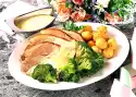 Sprinkle the remaining leaves over the meat. Arrange chops, potatoes and vegetables on preheated plates. Garnish with a sprig of thyme as desired.