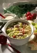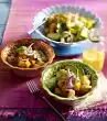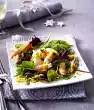 Mix drained vegetables with squid rings, chilli and the sauce. Arrange on plates and serve lukewarm garnished with carrot and lemon leaves.