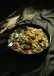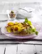 Chop half of it finely, put the rest of the parsley aside. Add the tomato pieces and chopped parsley to the squid 10 minutes before the end of the cooking time. Line 4 plates with the parsley leaves.