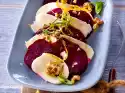 Cut the gjetost into slices. Cut Havarti cheese into quarters or cut out 4 circles (approx. 5 cm Ø) each. Halve roast beef slices lengthwise. Clean, wash and chop the peppers. Cut cress from the bed. Wash chervil, dab dry and remove leaves.