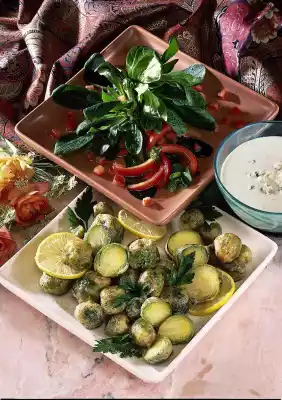Clean and wash the lamb's lettuce. Mix vinegar with salt, pepper and sugar. Whip oil into it. Add marjoram leaves and diced tomatoes and pour over the salad. Serve sprouts garnished with lemon slices and parsley.