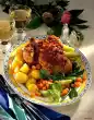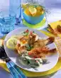 Add the Asian sauce and serve garnished with dill as desired.