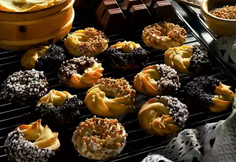 Pour the dough into a piping bag with star-shaped spout. Spray curls (approx. 5 cm Ø) onto a baking tray lined with baking paper and bake in a preheated oven (electric range: 175- 200 ° C/ gas: level 2-3) for approx. 15 minutes.