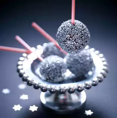 Turn into glitter sugar. Stick a stick into each ball. Chill for about 1 hour.
