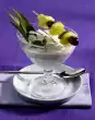 Put the syrup and fruit in a large glass container. Fill up with chilled mineral water just before serving. Add ice cubes or plastic cooler